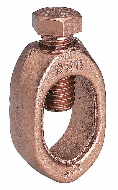 Mechanical ground rod clamp for cable to rod high strength 8 awg sol 1 0 awg str 3 4 ground rod 3 8 stud.